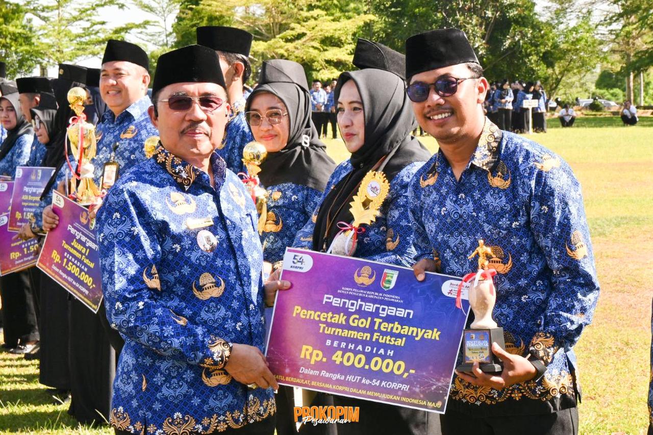 Transinformasi.com,Pesawaran-Pemerintah Kabupaten Pesawaran memberikan apresiasi kepada ASN berprestasi, juara lomba HUT KORPRI, serta pemberian tali asih kepada ASN purna tugas. Penyerahan tersebut dilakukan pada Upacara Mingguan sekaligus memperingati Hari Ulang Tahun Korps Pegawai Republik Indonesia (KORPRI) ke-54 di Lapangan Pemkab Pesawaran, Senin (1/12/2025).
