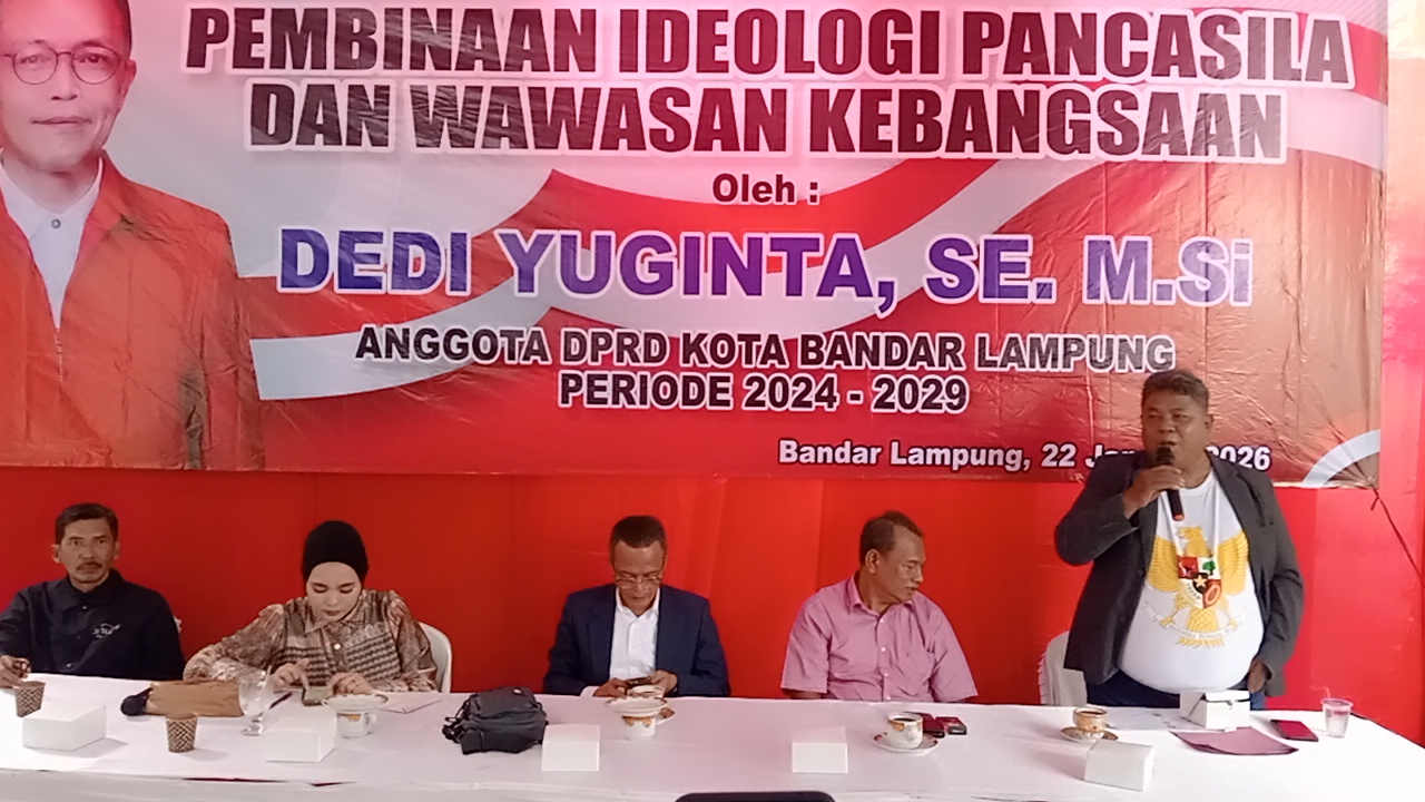 Hal tersebut disampaikan oleh Dedi Yuginta saat melaksanakan kegiatan Sosialisasi Pembinaan Ideologi Pancasila dan Wawasan Kebangsaan (PIP-WK) di Kelurahan Kota Baru,Kecamatan Tanjung Karang Timur (TKT) pada Kamis (22/01/2026).