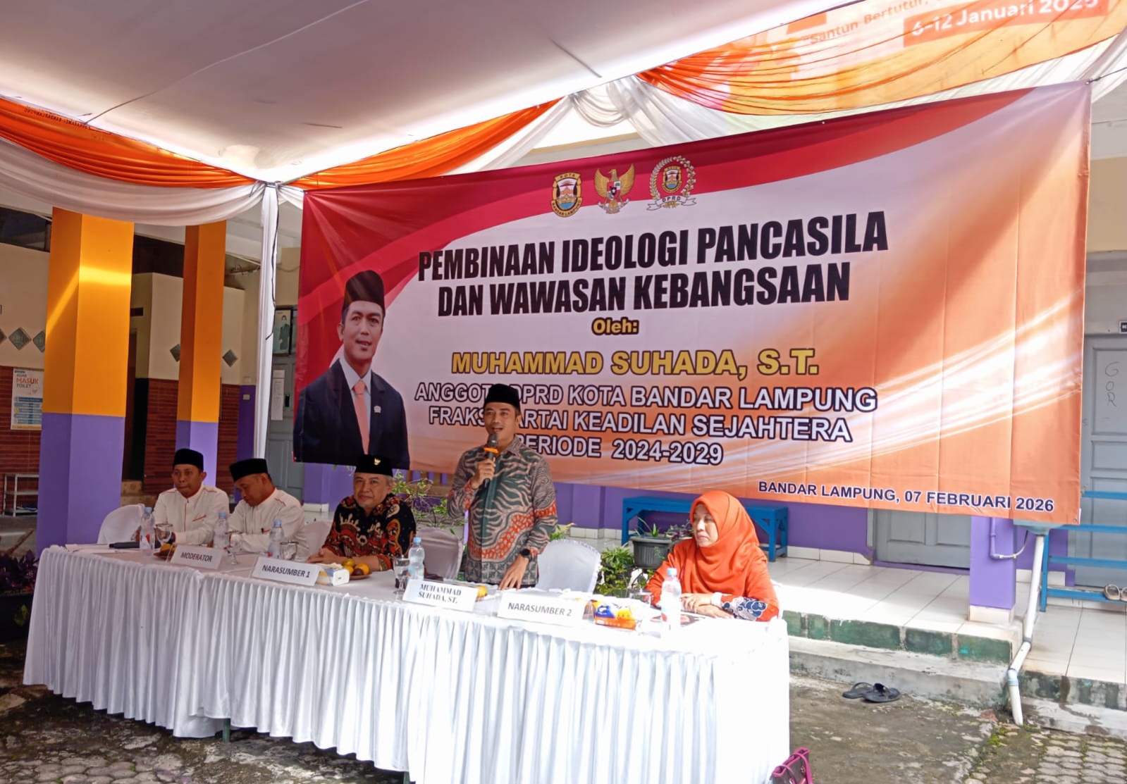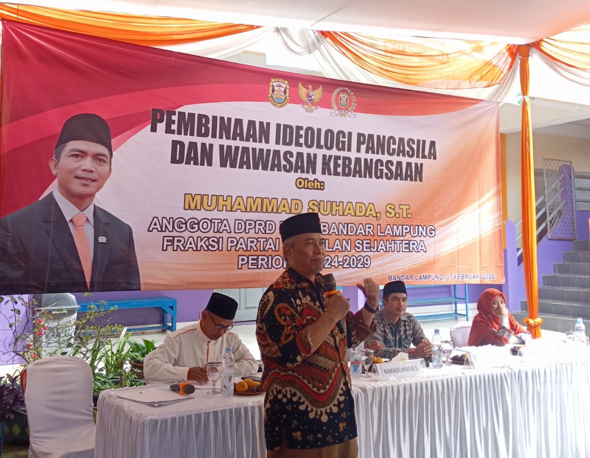 Demikian di ungkapkan oleh Muhammad Suhada saat menggelar kegiatan Pembinaan Ideologi Pancasila dan Wawasan Kebangsaan (PIP-WK) yang digelar di Kelurahan Segala Mider, Kecamatan Tanjungkarang Barat (TKB), pada Sabtu (07/02/2026).