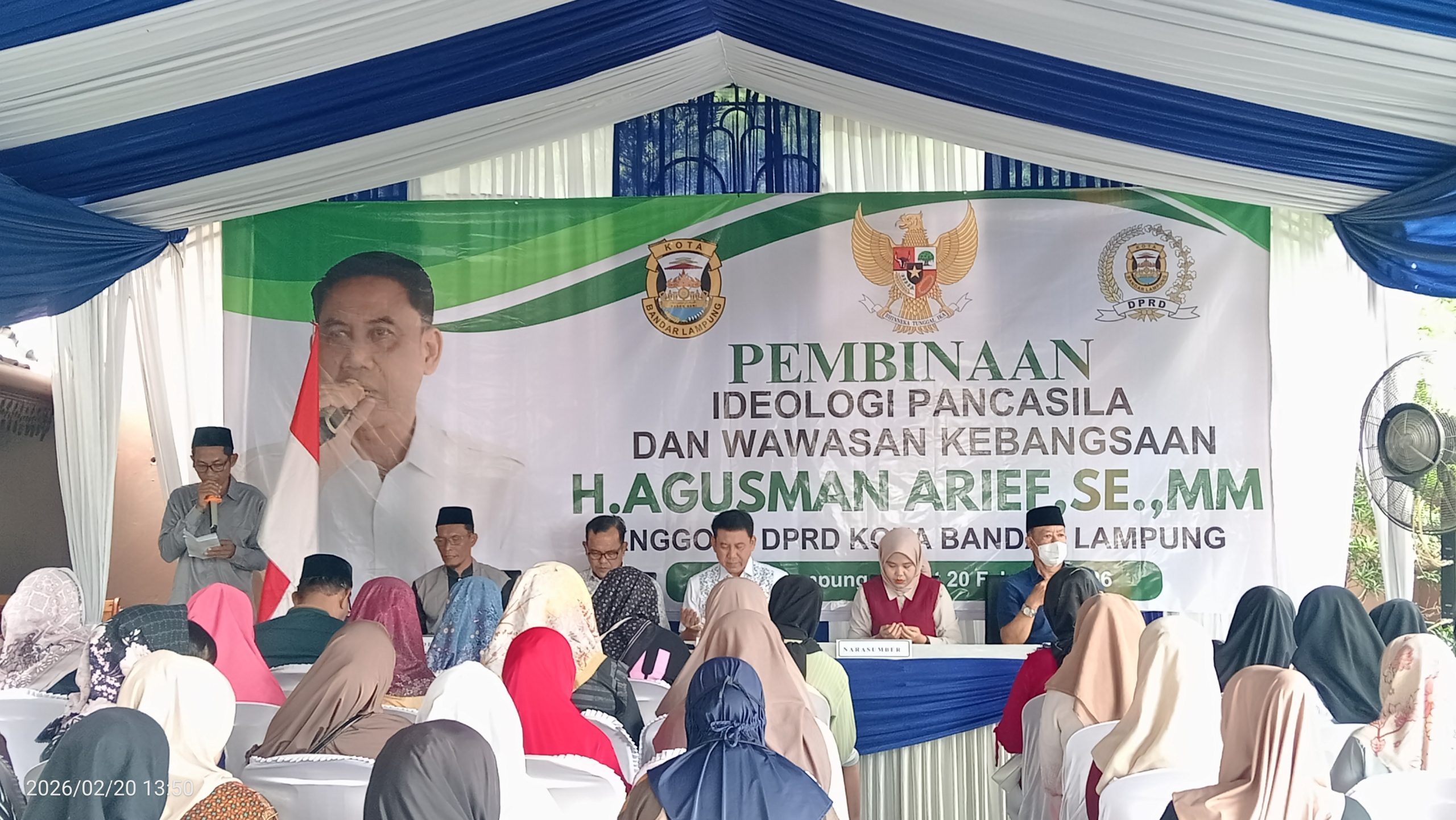 Transinformasi.com,Bandarlampung – Memasuki puasa ke- 2 di Bulan uci Ramadhan 1477 Hijriah,selaku Anggota DPRD kota Bandarlampung,H.Agusman Arief.S.E.M.M,terus konsisten melakukan sosialisasi Pembinaan Ideologi Pancasila dan Wawasan Kebangsaan (PIP-WK) kepada masyarakat yang dilaksanakan di Kelurahan Pengajaran, Kecamatan Teluk Betung Utara (TBU), Jumat (20/02/2026).