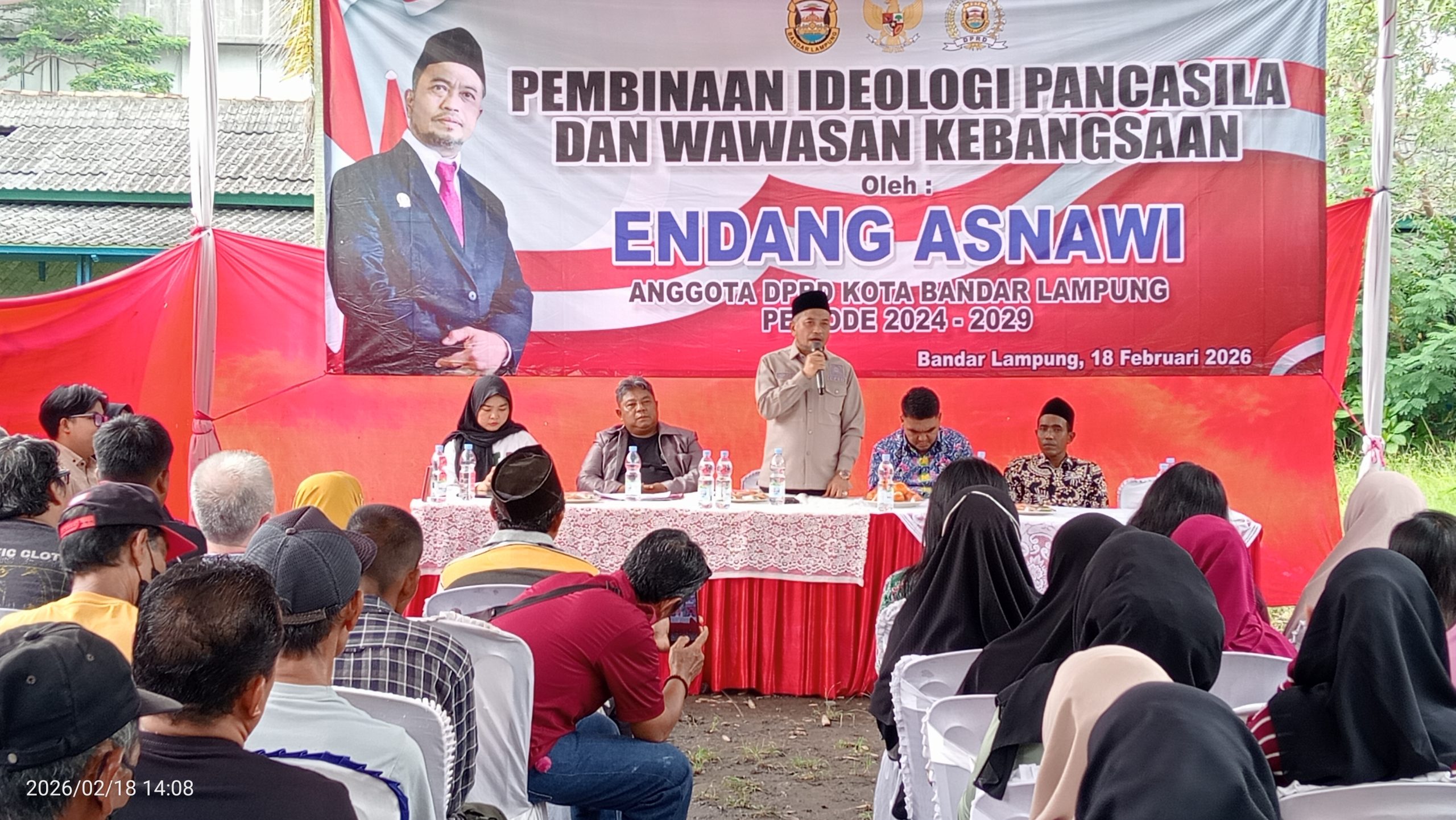 Demikian diutarakan oleh Endang Asnawi,disela-sela agenda sosialisasi Pembinaan Ideologi Pancasila dan wawasan kebangsaan (PIP-WK) di Kelurahan Sukaraja, Kecamatan Bumi Waras (BW) pada Rabu (18/02/2026).