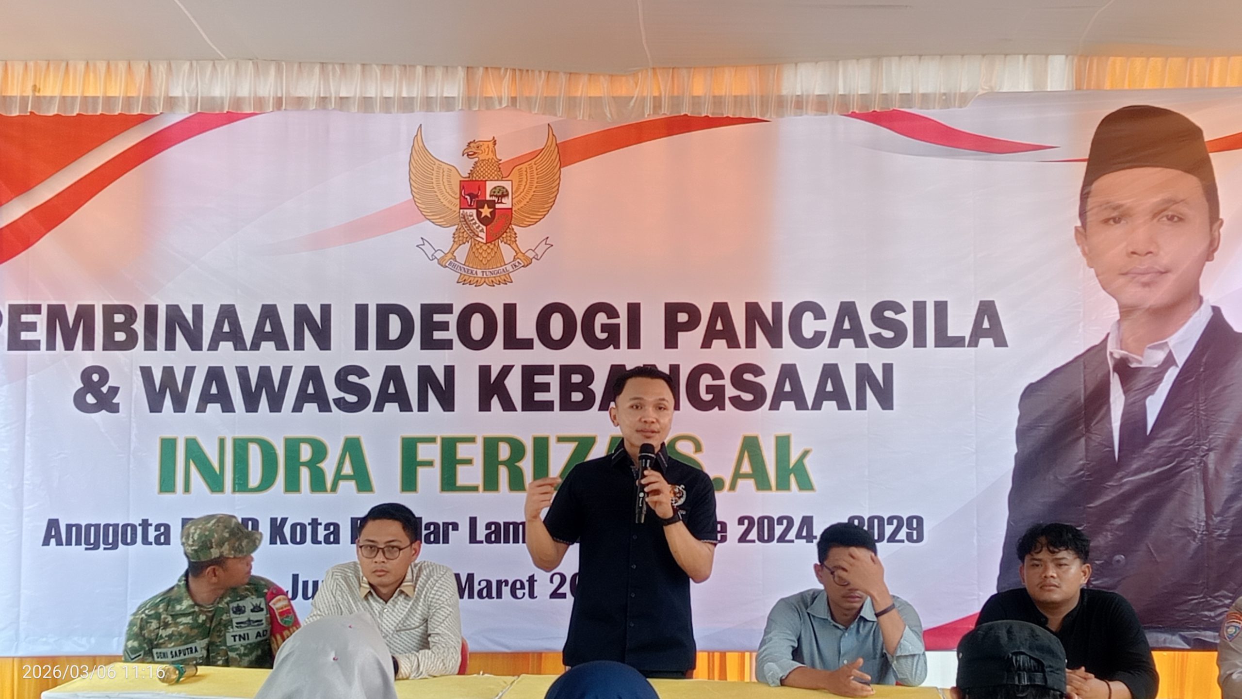 Transinformasi.com,Bandarlampung -Anggota DPRD Kota Bandar Lampung Indra Feriza,S.Ak menggelar kegiatan Sosialisasi Pembinaan Ideologi Pancasila dan Wawasan Kebangsaan (PIP-WK) di Kelurahan Pasir Gintung, Kecamatan Tanjung Karang Barat (TKB), pada Jumat (06/03/2026).